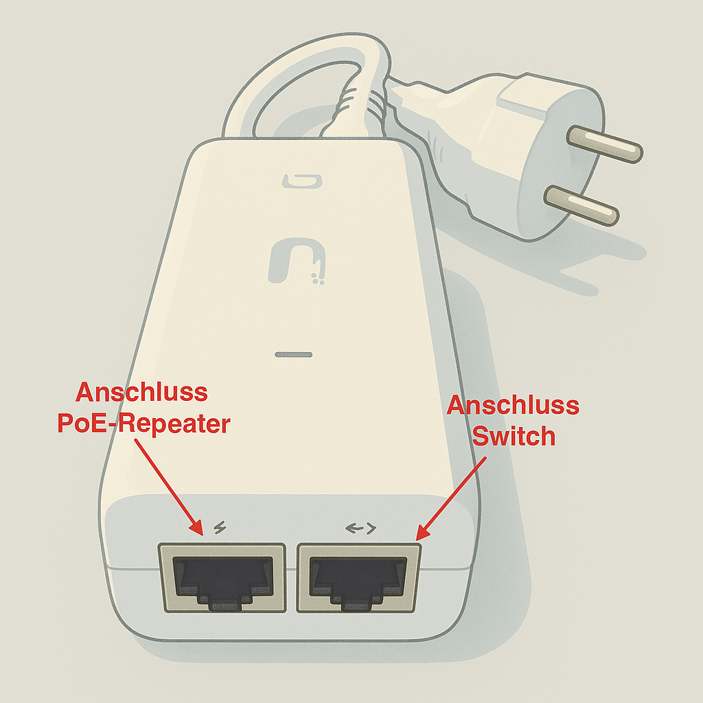 - Der mitgelieferte PoE-Injektor benötigt einen 230V Anschluss.